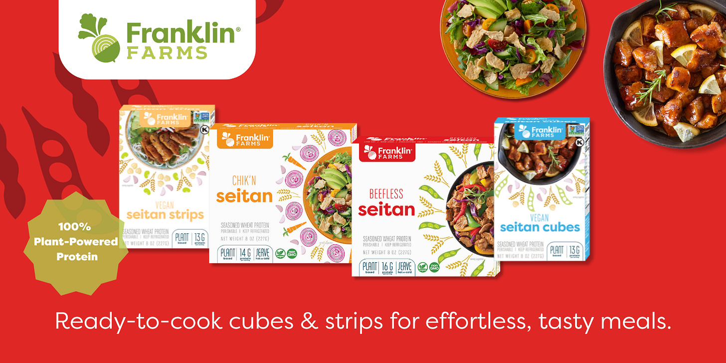 The folks at Franklin Farms know that great ingredients make great food. For quick and easy plant-based meals, grab their ready-to-eat seitan wherever you shop. It’s available in strips or cubes and offers 13+ grams of protein per serving. Throw it in a stir-fry, toss it into a salad, or crisp it up before adding to a steaming bowl of soup. Franklin Farms seitan is great in chili, too!
