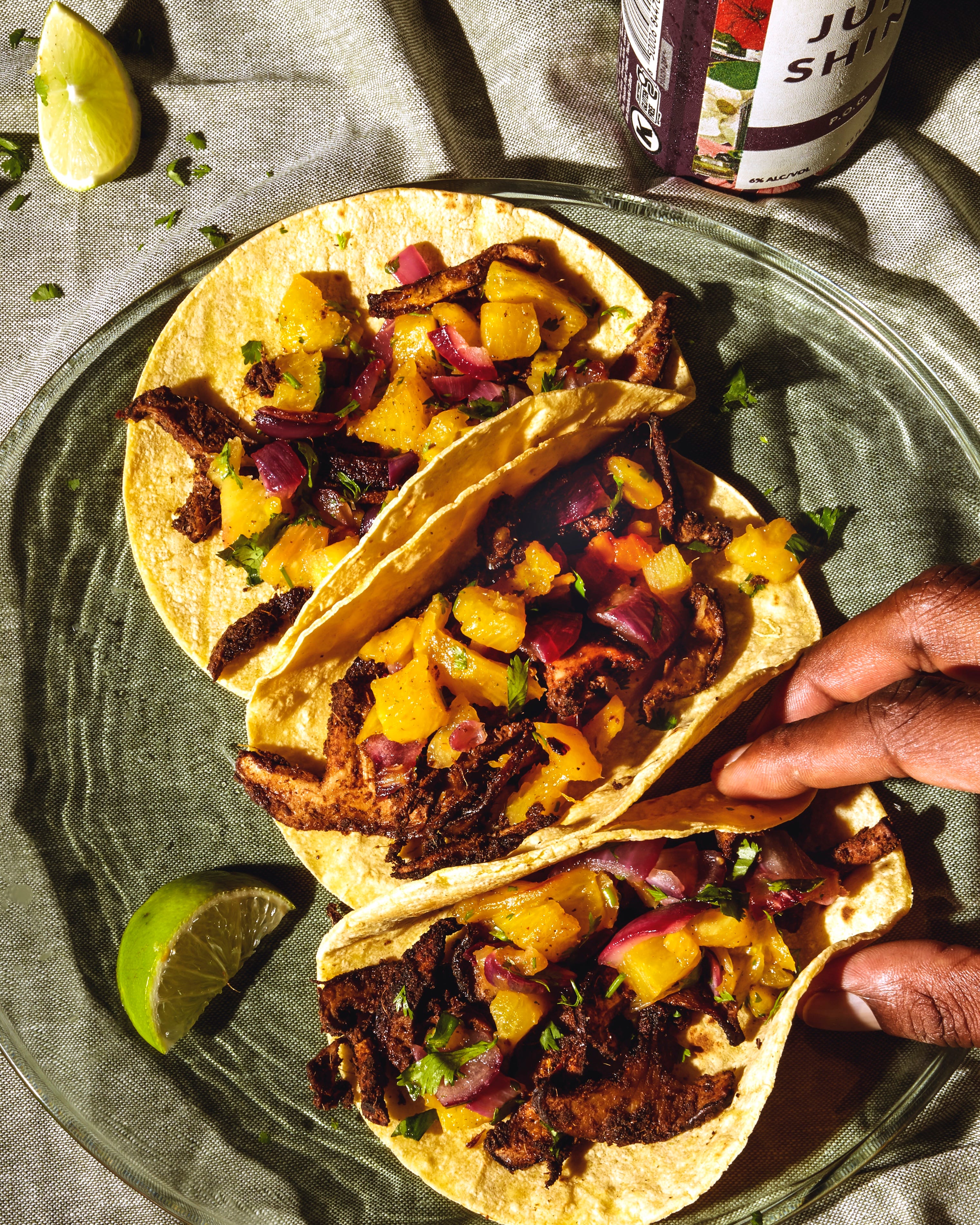 BUILD THE TACOS: Divide the roasted mushrooms among the tortillas (a little goes a long way), topping with some of the pineapple salsa, and serve.