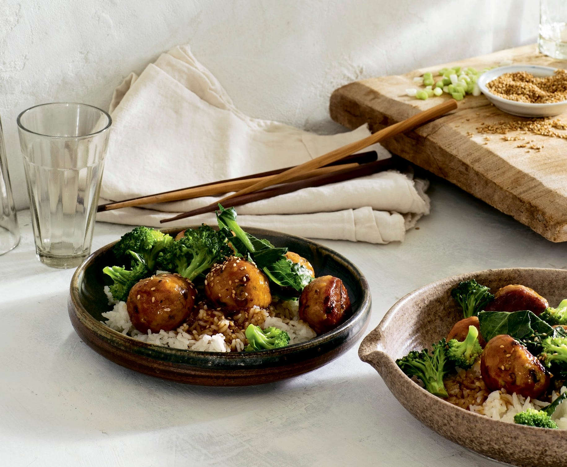 It helps that Maxine’s recipes are user-friendly and immediately appealing. She uses crispy baked chicken cutlets as a base for a bruschetta-inspired topping, adds umami to carbonara with a little miso, and quick glazes edamame in honey and soy sauce. Her teriyaki meatballs—you’ll find the full recipe below—bake in the oven for minimal fuss.